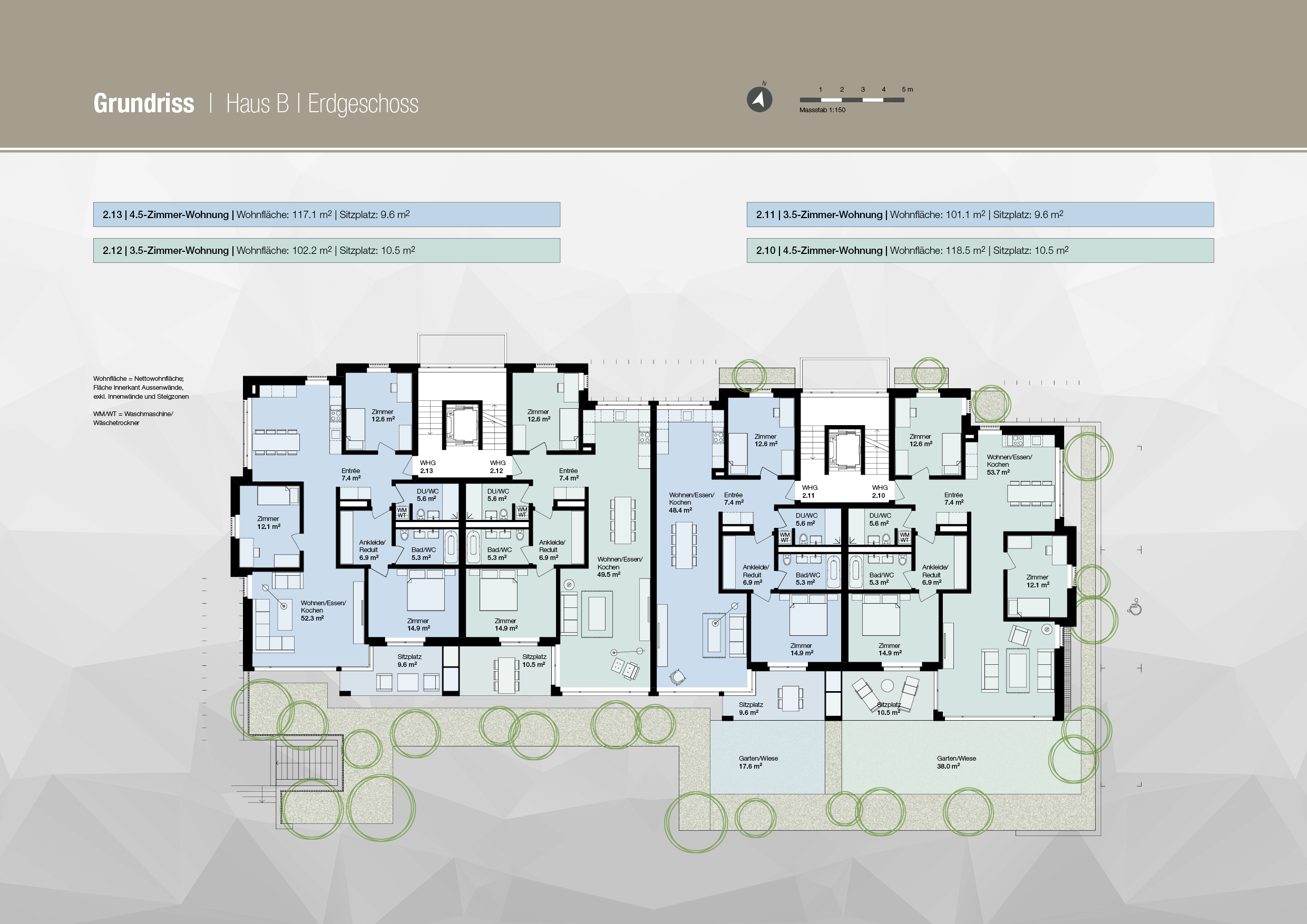 | Erdgeschoss | 2.13 | 4.5-Zimmer-Wohnung | 117.1 m² | 9.6 m² | 7.3 m² | Verkauft | JPG (1:150) | Kontakt |