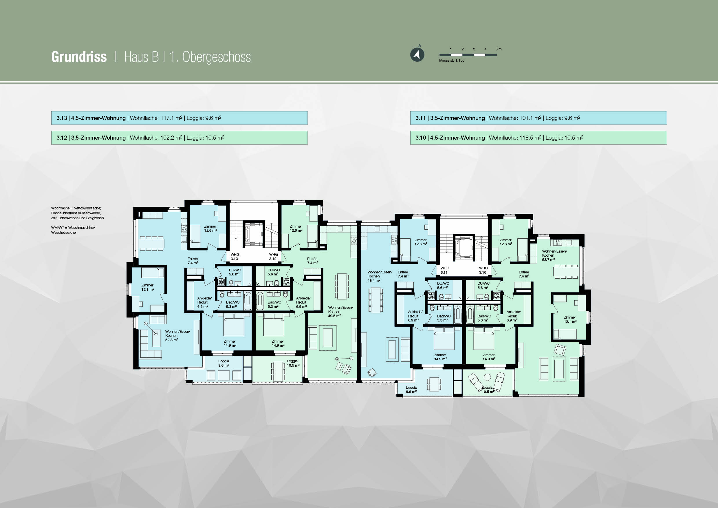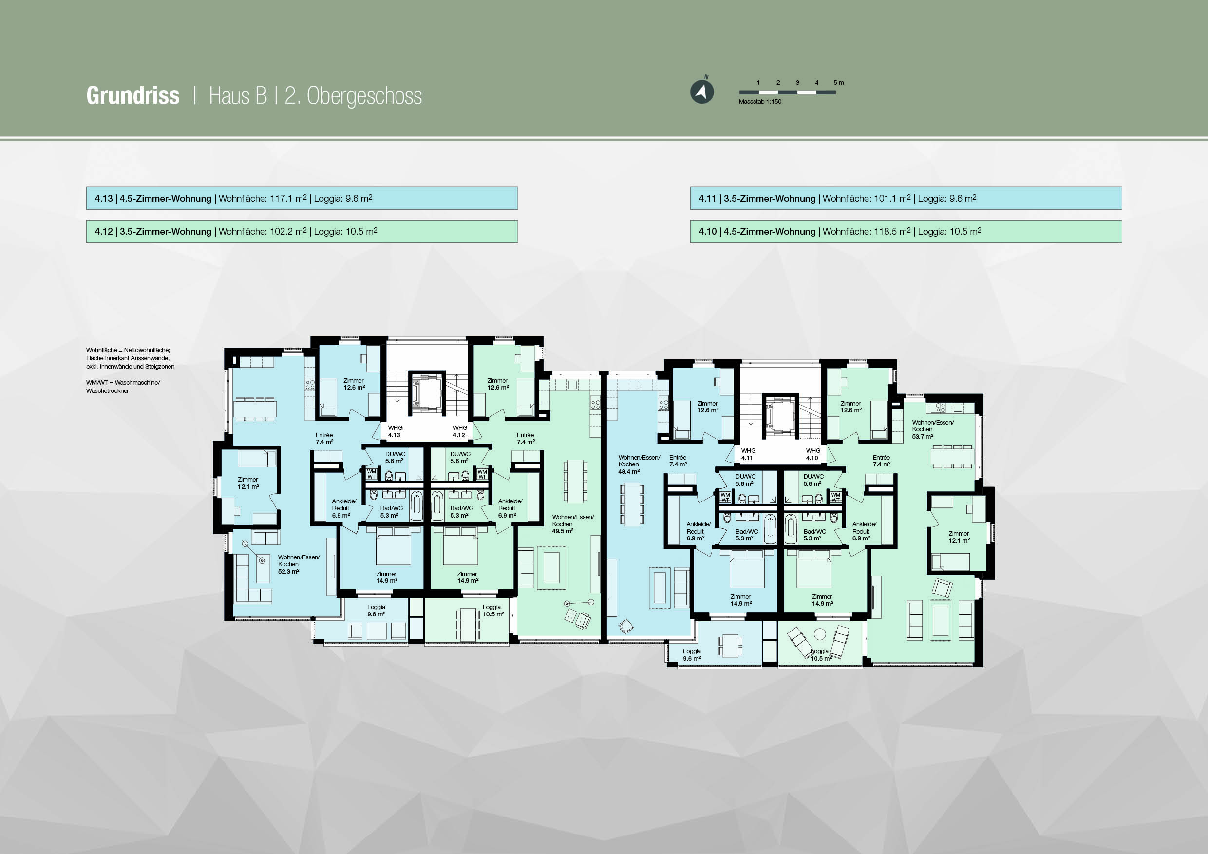 | 2. Obergeschoss | 4.13 | 4.5-Zimmer-Wohnung | 117.1 m² | 9.6 m² | 7.6 m² | Verkauft | JPG (1:150) | Kontakt |